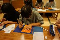 | 初めての競書会では、全員が一文字一文字心を込めて書き上げました。初めは慣れない環境に緊張する姿も見られましたが、徐々にいつもの落ち着きを取り戻し、満足のいく作品が出来上がったようです。本当によく頑張りました。 | |