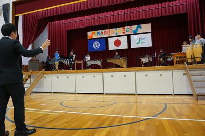 | 11月13日(土)に「校内音楽会」が行われました。5年生は、斉唱「ありがとうの花」と、合奏「リボンのおどり(ラ・バンバ)」を披露しました。5年生全員の心のこもった歌や合奏に、聞く人たちへ深い感動を与えられたと思います。特に合奏は30通りも覚える内容があり、担当が1人2つあり、移動があり、動きがありと、とても大変だったと思いますが、みんなよく覚えました。最後のきめがとてもかっこよかったです。10人全員と、聞く人たちで音を楽しむことが出来ました。 |