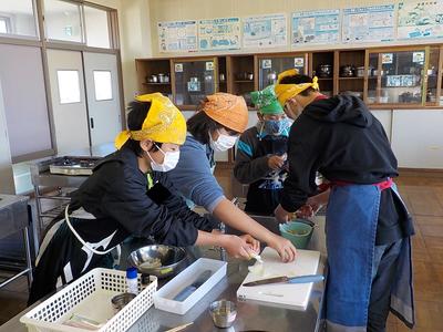 12月2日(木)に調理実習を行いました。今回は、ご飯を炊き、みそ汁を作りました。この調理実習で使ったお米は、田植え体験や稲刈り体験を行わせていただいた大野様の田んぼからとれたお米です。感謝の気持ちを込めて大野様と校長先生を招待し、一緒に会食を行いました。調理も実食も楽しく、良い経験となりました。大野様、ありがとうございました。 |
