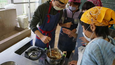 | 11月20日(金) 残念ながら、中止となってしまった林間学校の代替行事として、学校で、カレー作りとキャンドルファイヤーを行いました。仲間と協力して、楽しい思い出を作ることができました。 |