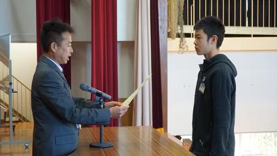 新年明けましておめでとうございます。 校長先生からは、今年は「モー、いやだ」「モー、ダメ」とあきらめずに「モー、少し頑張る」ことができるようにしましょう。と話がありました。3学期は、まとめの学期です。体調管理をしながら元気に過ごしていきましょう。 |