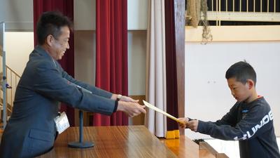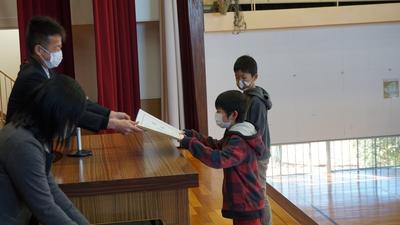 | 保護者の方々や地域の方々にご支援いただき、無事に2学期の終業式を迎えることができました。子供たちも、元気に58名全員が終業式に参加することができました。また、本年度初めて校歌を全員で歌いました。 |