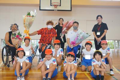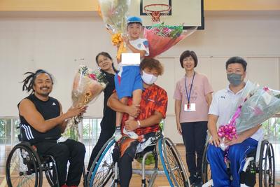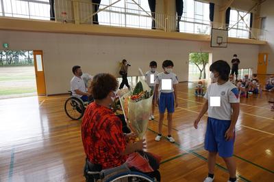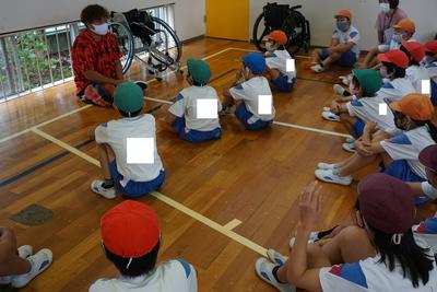 | パラリンピックキャラバンにて、車いすバスケットボール体験学習を行いました。選手の方と一緒にスポーツを体験し、共に生きることを学びました。「「できないことを数えるよりできることを数えよう。」という言葉が強く心に響きました。 |